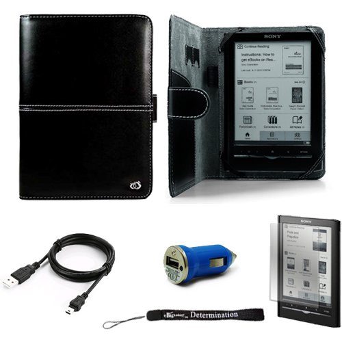 Black Travel / Business Durable Portfolio Protective Cover Case Leather Jacket for Sony Reader Touch Edition PRS650 PRS 650 eReader Device (Compatible with all colors) + Indlues a 4-Inch Determination Hand Strap + Includes a Anti Glare Screen Protector + Includes a Travel USB Car Charger Kit + Includes a USB Data Sync Cable for your eReader (Mini USB Type) Review