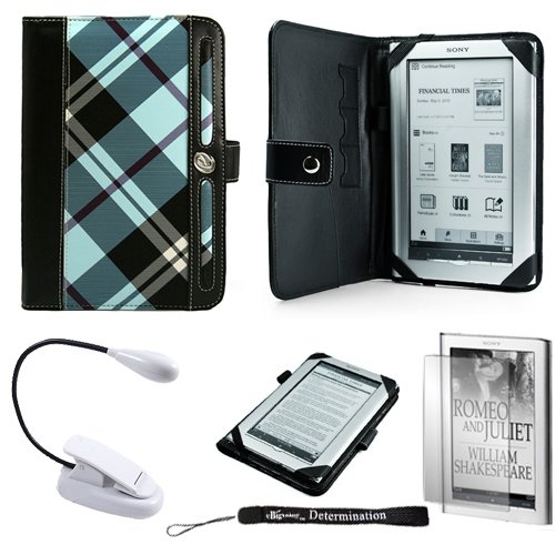 Blue Plaid Design Agenda Lining Leather Flip Jacket Portfolio Cover Carrying Case for Sony PRS-950 Electronic Reader eReader Device ( PRS 950 PRS950 )(Compatible with all colors) + Indlues a 4-Inch Determination Hand Strap + Includes a Anti Glare Screen Protector + White Clip On Brighty XtraFlex LED Light Flexible Goose Neck Review